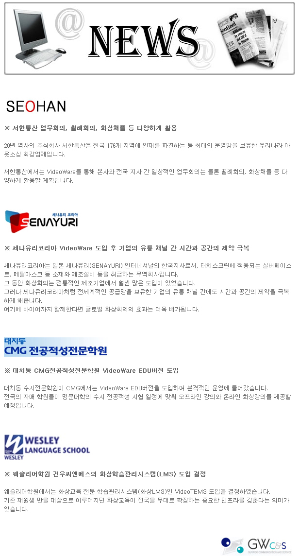 [뉴스]2014.6월 -서한통산, 세나유리코리아, CMG수시전문학원, 웨슬리어학원 등 작성일Date: 2014-12-19 17:10