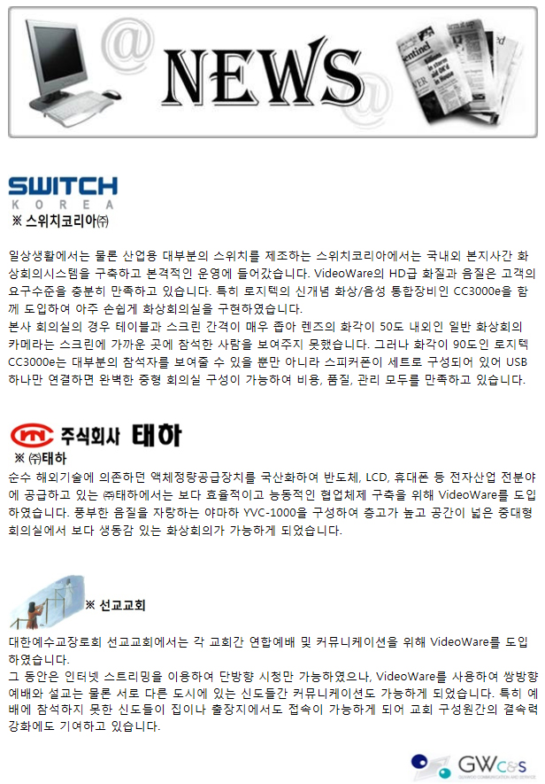 [뉴스] 2014. 9월- 스위치코리아, (주)태하, 선교교회... 작성일Date: 2014-12-19 17:13