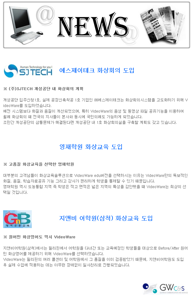 다음글[뉴스]2013.08월-제주특별자치도, 금호HT, (주)웅남, 제이콥잉글리쉬 등 2014.12.19