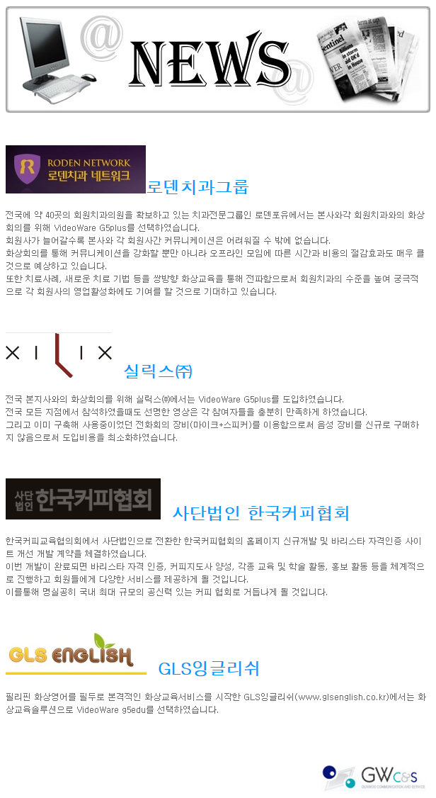 [뉴스]2012.03월-로덴치과그룹, 실릭스㈜, 사단법인 한국커피협회,GLS잉글리쉬 등 작성일Date: 2014-12-19 16:27