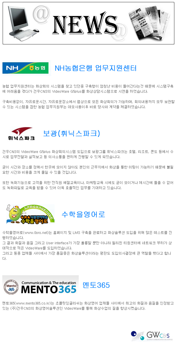[뉴스]2012.04월-NH농협 업무지원센터, 보광(휘닉스파크), 수학을영어로, 멘토356 등 작성일Date: 2014-12-19 16:28