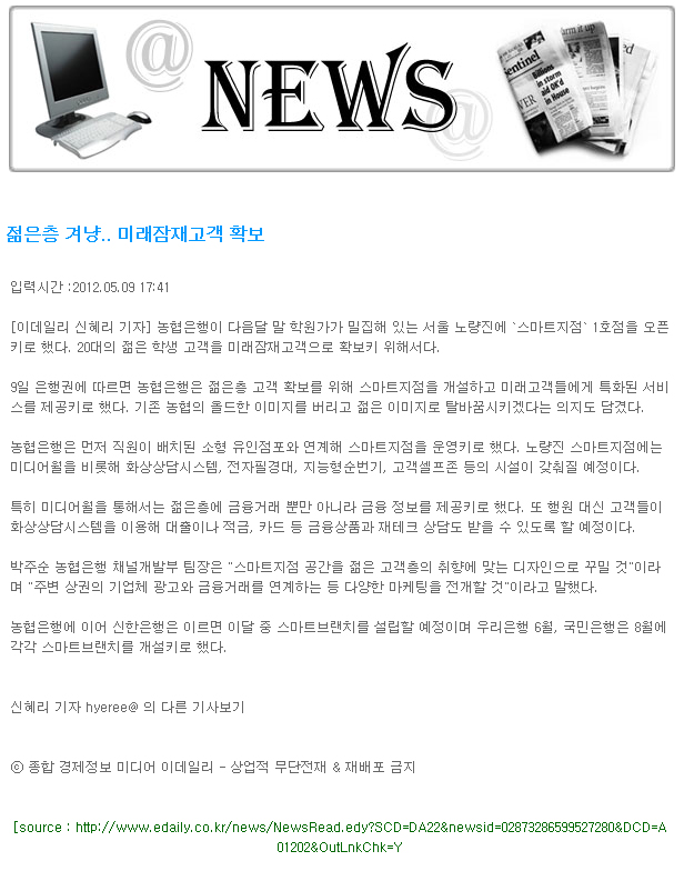 농협銀, 내달 서울 노량진에 첫 `스마트지점` 오픈 작성일Date: 2014-12-19 16:29