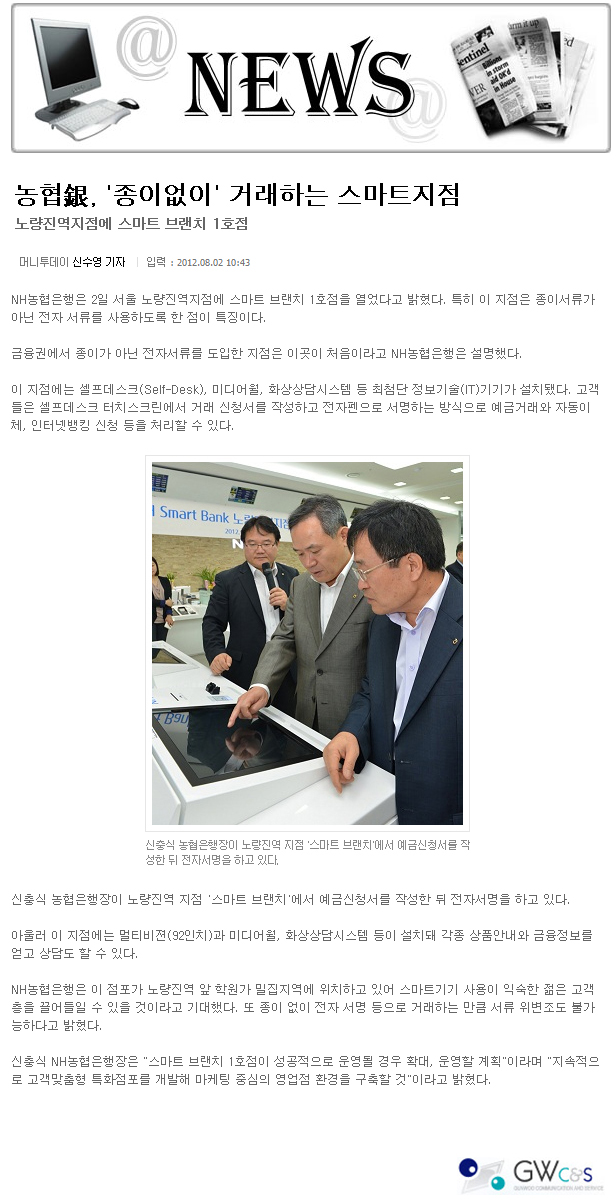 농협銀, '종이없이' 거래하는 스마트지점 작성일Date: 2014-12-19 16:32