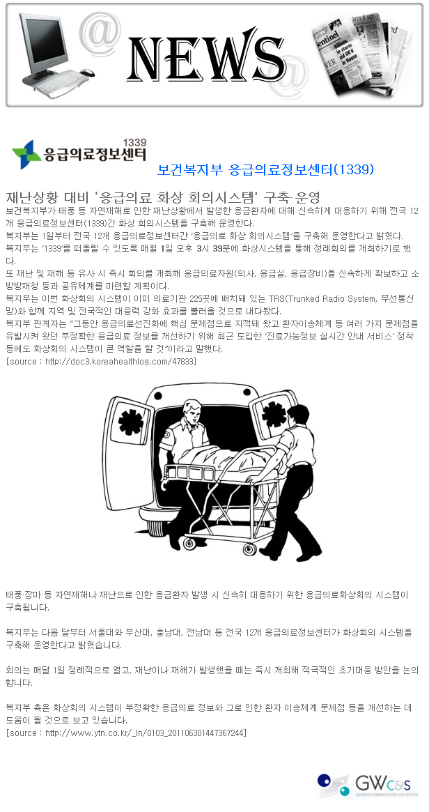 [뉴스]2011.10월-보건복지부 응급의료정보센터(1339), 등 작성일Date: 2014-12-19 16:20