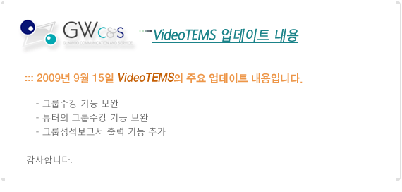 [뉴스]VideoTEMS 업데이트 내용 작성일Date: 2014-12-19 15:58