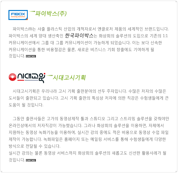 [뉴스]2007년 12월의 새로운 고객입니다. 작성일Date: 2014-12-19 15:46 페이지 정보 작성자 최고관리자 조회 68,465 본문 목록 이전글[공지]참여자 화면보기 기능 업그레이드 2014.12.19 다음글[뉴스]2007년 9월의 새로운 고객입니다. 2014.12.19