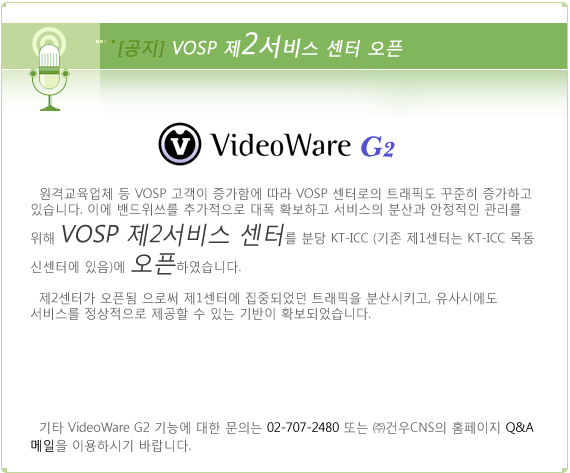 [공지]VOSP 제2서비스센터 오픈 작성일Date: 2014-12-19 15:52 페이지 정보 작성자 최고관리자 조회 70,322 본문 목록 이전글[뉴스]농협 인터넷서 송아지 전문가 과정 운영 2014.12.19 다음글[공지]웹카메라 YUY2 비디오포맷 추가지원 업그레이드 2014.12.19