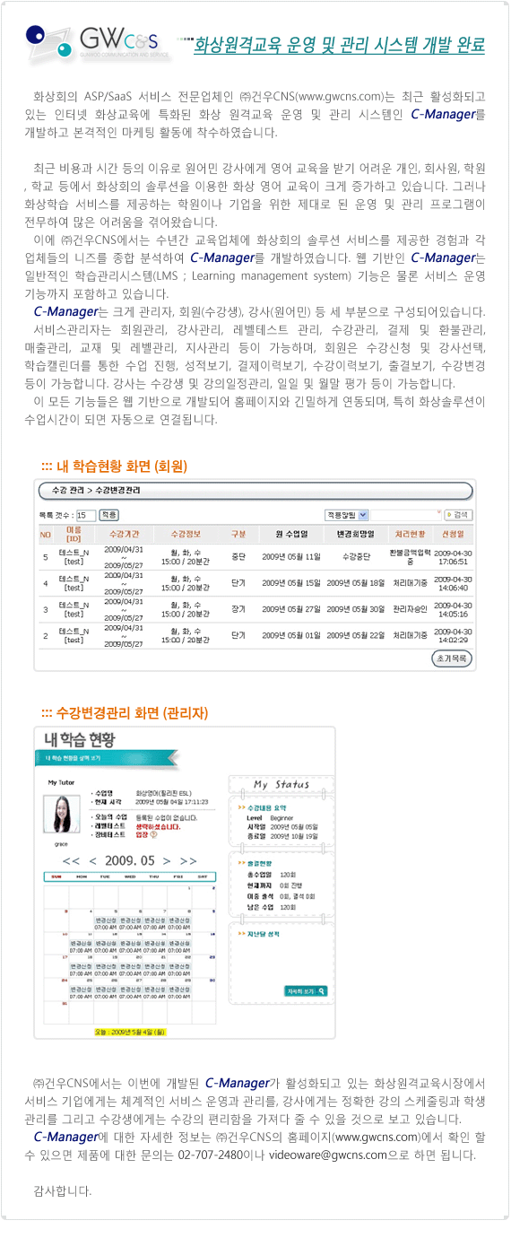 이전글[뉴스]파이낸셜뉴스-건우CNS, 인터넷 화상교육시스템 ‘C-매니저’ 선보여 2014.12.19