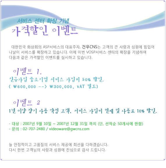 [뉴스]서비스 센터 확장 기념 이벤트 안내 작성일Date: 2014-12-19 15:44 페이지 정보 작성자 최고관리자 조회 68,141 본문 목록 이전글[뉴스]2007년 9월의 새로운 고객입니다. 2014.12.19 다음글[뉴스]2007년 8월의 새로운 고객입니다. 2014.12.19