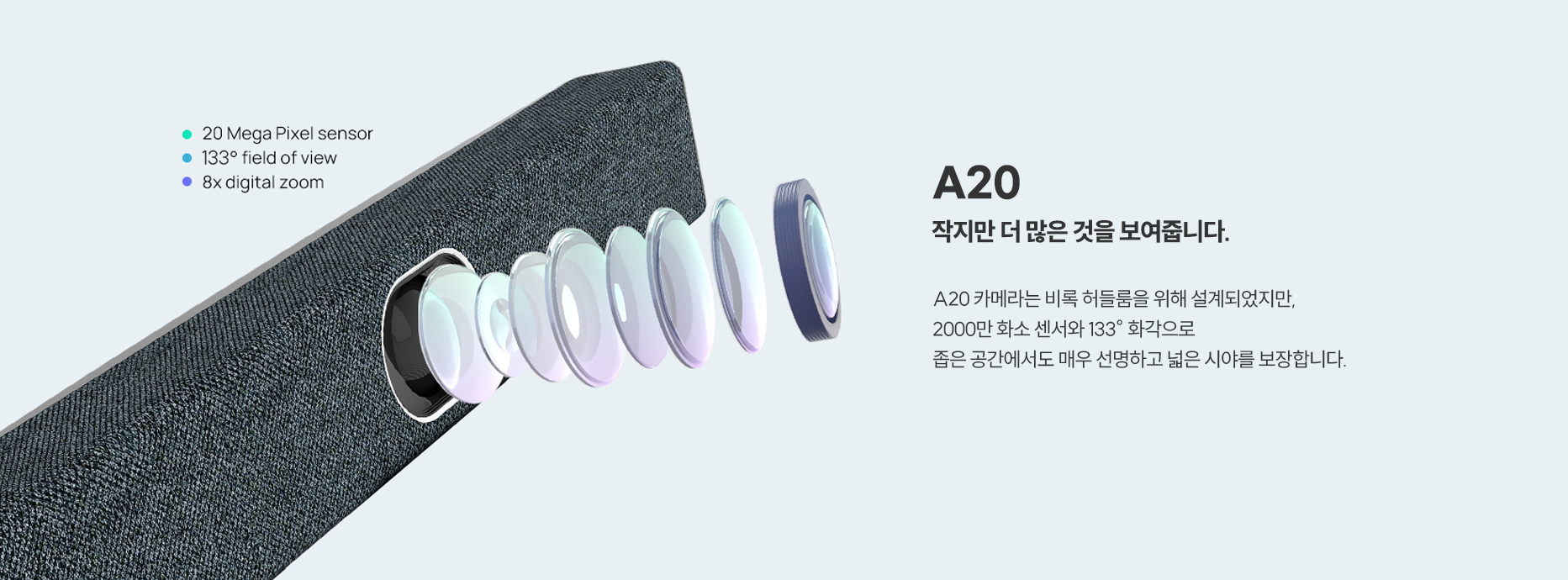 내장된 8개의 MEMS 빔포밍 마이크 그리고 확장성