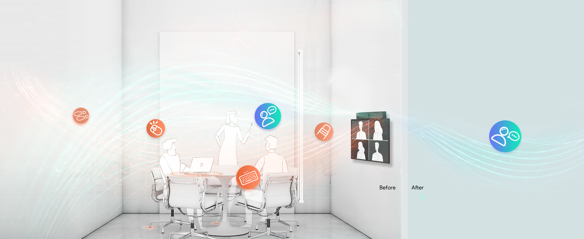 예링크의 향상된 AI 노이즈 캔슬링은 대규모 딥 러닝 사운드 데이터베이스를 활용하여 지능적으로 배경 소음을 획기적으로 줄여줍니다. 이제 주의를 산만하게 하는 키보드 덜거덕거림, 마우스 클릭, 발자국 및 기타 주변 소음에 방해받지 않고 회의에 좀 더 집중할 수 있습니다.