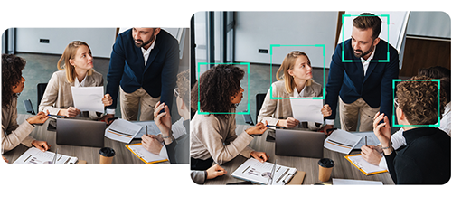 다중 초점 프레이밍 모드는 모든 참석자를 인식하고 각 참가자를 프레이밍하여