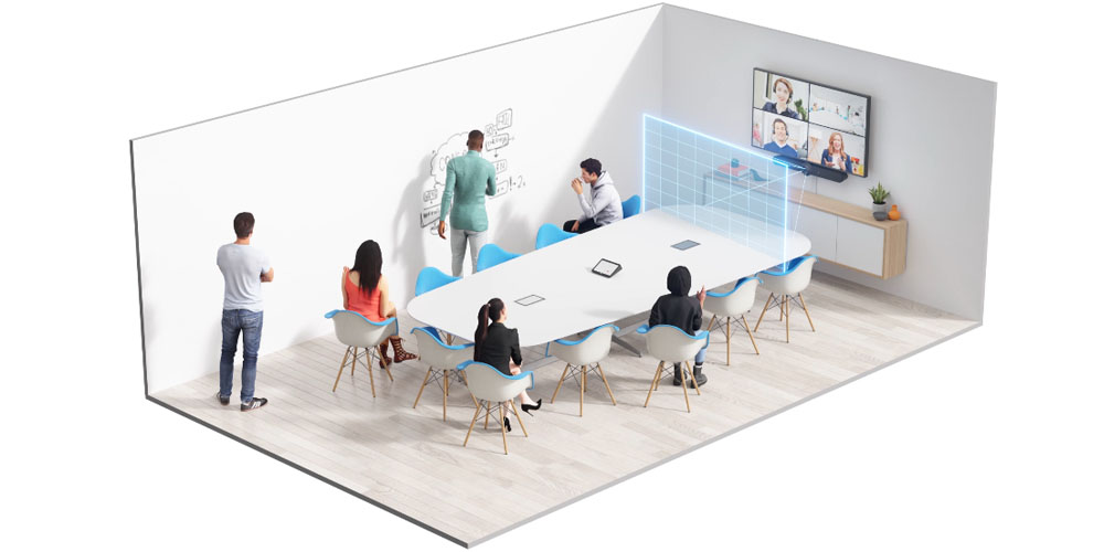 AI 뷰파인더로 회의 참여자에게 포커스합니다. 장면을 인식하여 RightSight 오토 프레이밍과 카메라 컨트롤을 최적화합니다.