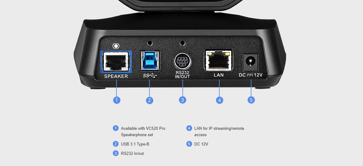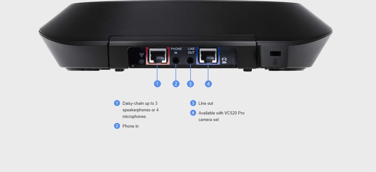 1. VC520 Pro2에는 고화질 12배 광학 줌 및 데이지 체인 스피커폰이 장착되어 있습니다. 1080p HD 품질, Sony True WDR 및 IP 기반 관리 기능을 갖춘 VC520 Pro2는 기업을 위한 프로페셔날 화상회의 시스템입니다.