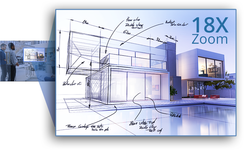 VC520 Pro2에는 총 18배 줌 및 다중 자동 초점 광학 장치가 내장되어 있어 제품의 섬세한 부분까지 풀 HD 1080p 품질로 제공합니다.