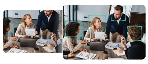 자동 프레이밍은 참석자의 수와 위치를 자동으로 인식합니다. 참가자가 공간에 입장할 때마다 계속 조정되므로 수동 설정이 필요 없습니다.